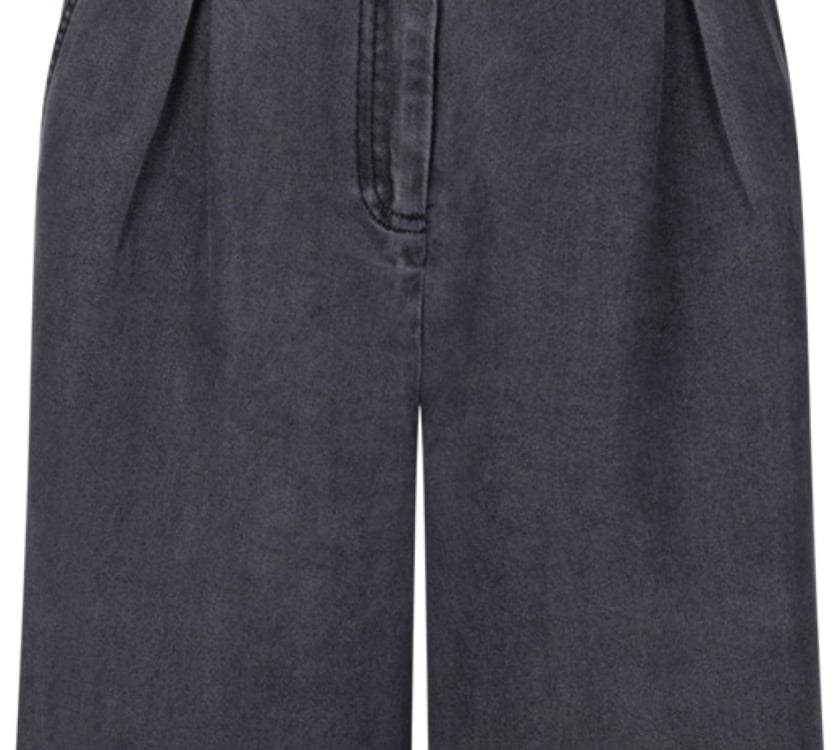 De Eline Ten 522 van Aaiko is een grijze bermuda pantalon voor dames met een knielengte en een hoge taille. Het model heeft een wijdvallende snit, afgewerkt met bandplooien voor een verzorgde uitstraling. De broek is gemaakt van tencel en heeft een gewassen grijstint. De hoge tailleband is voorzien van een elastische koppelriem, wat het ontwerp een eigentijdse lijn geeft. Combineer deze pantalon met het Lies gilet en een blouse of top voor een zelfverzekerde stijl.