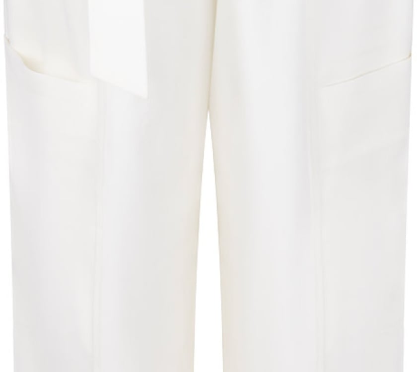 Deze off white pantalon van Aaiko is uitgevoerd in een mix van polyester en viscose. Het model heeft een hoge taille, een normale pasvorm en wijde pijpen voor een duidelijke, elegante lijn. De bijpassende riem van dezelfde stof benadrukt de taille, terwijl de zakken op de bovenbenen een trendy detail toevoegen. Door de ecru tint laat deze broek zich eenvoudig combineren met een blouse of fijngebreide top. Een verzorgde broek met een rustige, zelfverzekerde uitstraling.