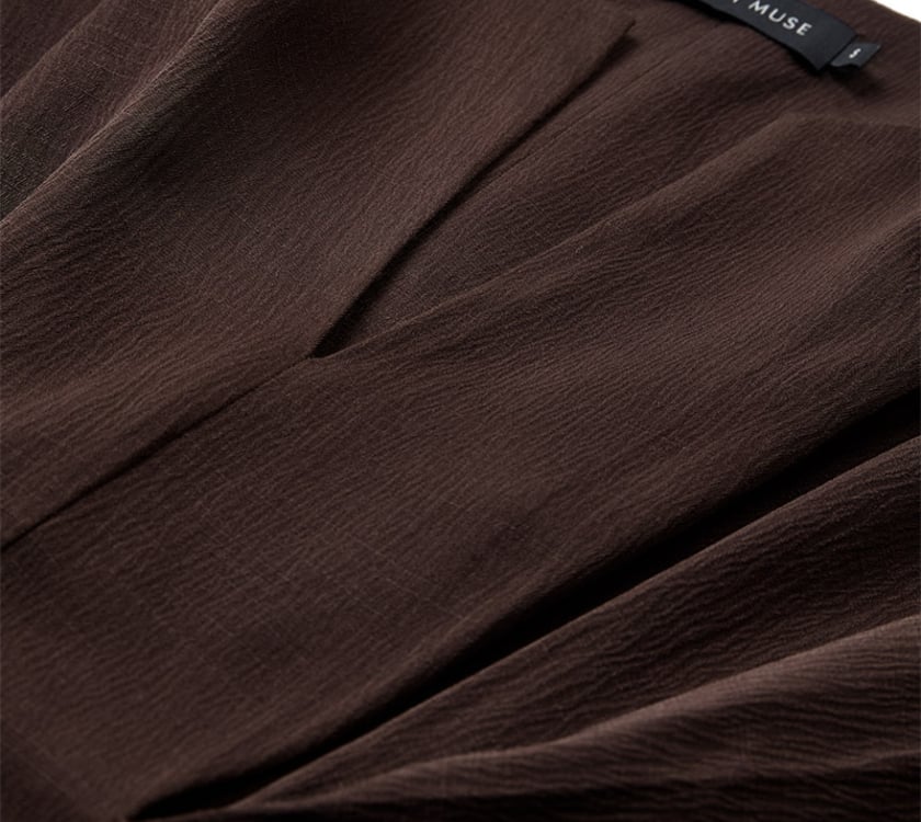 De Cmvianna Dress van CPH Muse is een damesjurk in chocoladebruin met een crinkle motief en een lichte glans in de stof. Het model heeft diverse plooidetails, wijdvallende mouwen en een iets verhoogde taillenaad. In de zijnaad is een blinde rits verwerkt voor een strakke afwerking. De materiaalmix van elastaan, polyester en viscose geeft de jurk een lichte stretch.