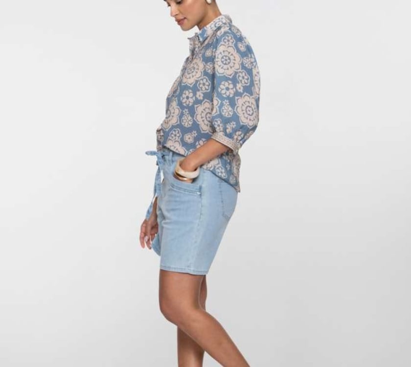 Deze blauwe short van Geisha is uitgevoerd in een mix van katoen, polyester en linnen. De korte broek heeft een normale taillehoogte en een normale pasvorm met een licht relaxte uitstraling. De bleached denim geeft het ontwerp een lichte blauwtint die goed past binnen een casual garderobe. Combineer hem eenvoudig met een T-shirt of blouse voor een rustige, verzorgde look. Een toegankelijke short met een heldere stijl van Geisha.