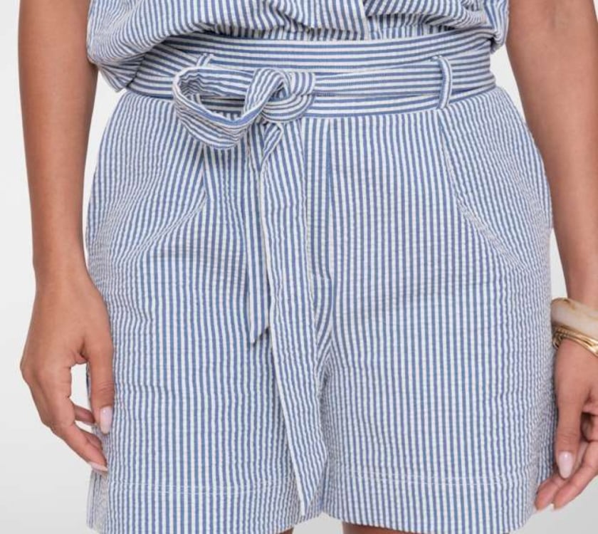 Deze short van Geisha is uitgevoerd met een ingeweven streepjes in blauw en wit en heeft een subtiel seersucker effect. De stof is gemaakt van stretchy katoen, polyester en elastaan. De short heeft een normale pasvorm, een normale taillehoogte en een elastische tailleband. Door het gestreepte dessin krijgt het model een heldere, verzorgde uitstraling. Mooi te combineren met een eenvoudige top voor een rustige, zelfverzekerde look.