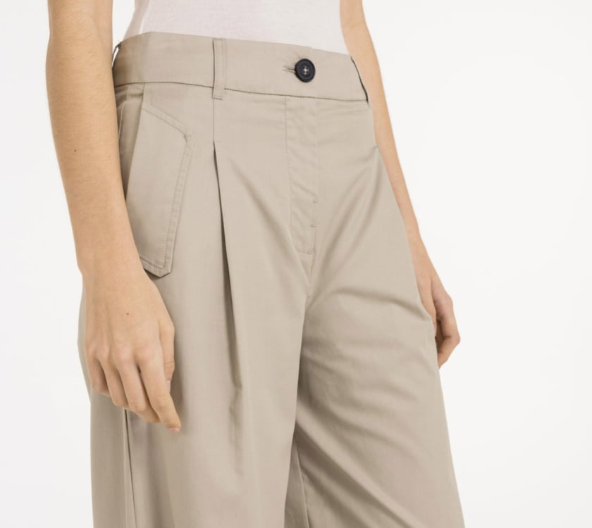 Deze beige pantalon van Yaya is uitgevoerd in een mix van katoen en lyocell. Het model heeft een hoge taille, een normale pasvorm en wijde pijpen voor een eigentijdse lijn. De verlaagde bandplooien en insteekzakken met klep geven het ontwerp een subtiel cargo-accent. De zandkleurige tint is gemakkelijk te combineren met een eenvoudige top of blouse. Een stijlvolle broek met een heldere, zelfverzekerde uitstraling.